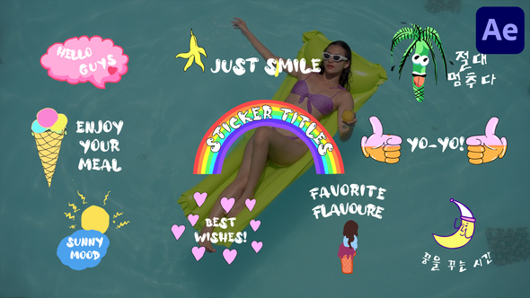 Colorful Sticker Titles for After Effects is a fun and sweet text animation template designed in a cartoon-style sticker format. With this template, users can easily customize text and adjust colors to create unique and eye-catching titles for a variety of projects. Whether you want to add a playful touch to your social media posts, make your vacation videos pop, or inject fun into any project that requires attention-grabbing titles, Colorful Sticker Titles is the perfect tool.